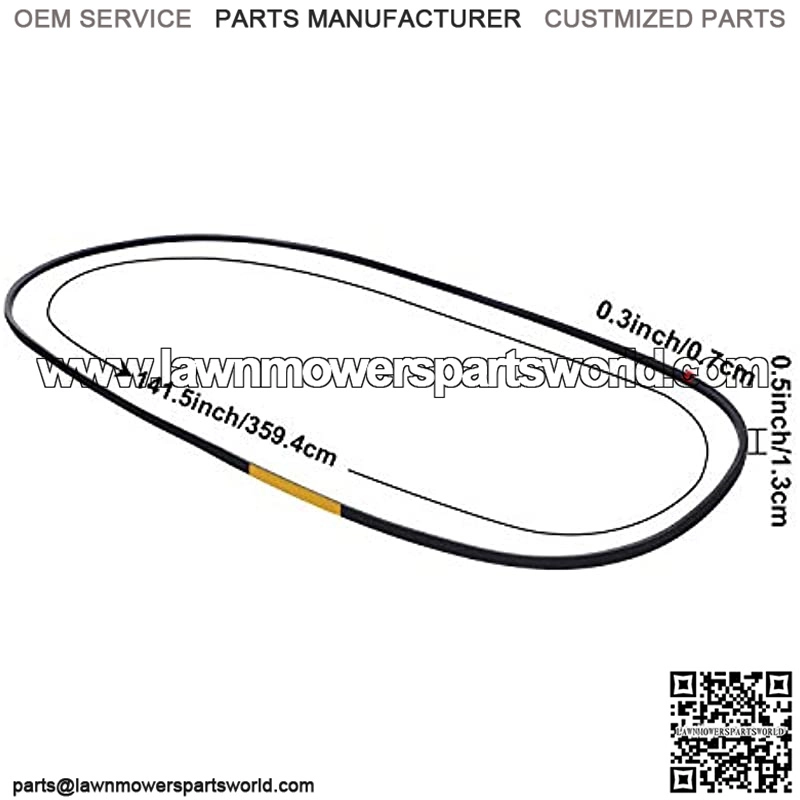 Product size: the width of drive deck v-belt is 1/2 inch/ 1.3 cm, and the length is 141-1/2 inch/ 359.4 cm, please make sure it’s the right size for you before purchasing