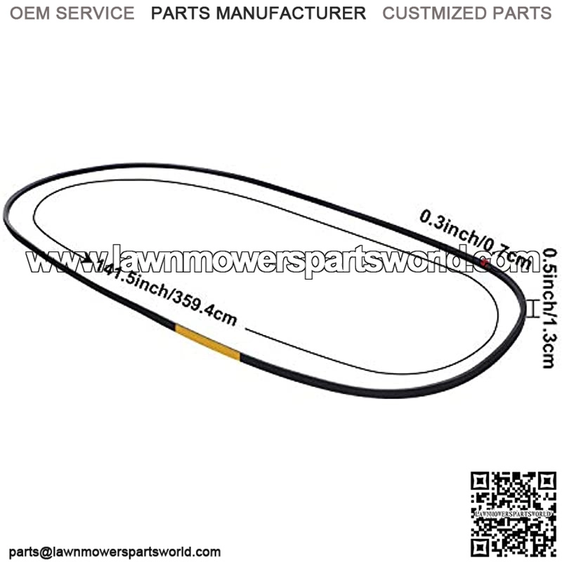 Product size: the width of drive deck v-belt is 1/2 inch/ 1.3 cm, and the length is 141-1/2 inch/ 359.4 cm, please make sure it’s the right size for you before purchasing