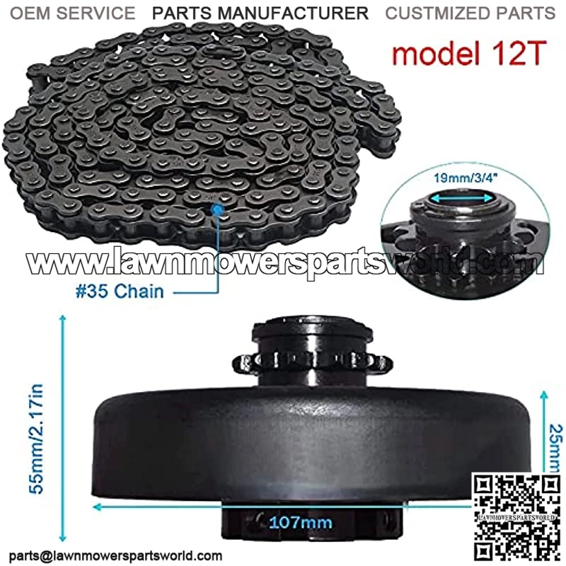 12T Centrifugal Clutch 3/4 Bore 12 Tooth with 35 Chain for Go Karts/Mini Bike/Lawnmower Fun Kart 2-7 HP Engine Replacement for GX160 GX200 GX140 GX120 GC160 GC19