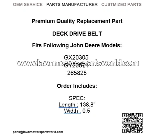 139-Inch 1/2″ SPA Thick Deck Drive Belt for John Deere GX20305 & GY20571 (Part #265828)