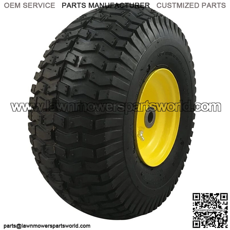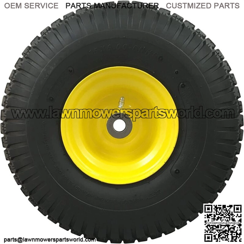 Tire: 15×6.00-6 tube type turf Saver Tread – pneumatic 4 Ply rating – check your existing tire SidewallWheel: Solid Yellow Steel, 3″ offset hub, 3/4″ Sintered Iron BushingsLoad capacity/speed: 400 lbs./ not for highway speedsReplacement for John Deere Mowers with front tire size 15×6.00-6 (check sidewall)Low hassle, low cost solution to repair or replace your mower tires15x6.00-6 air filled (pneumatic) front tire and wheel assembly is the perfect replacement for John Deere Riding mowers with 15×6.00-6 tires (check your existing tires sidewall). You don’t need to change out an old tube or visit a professional tire shop, simply replace the entire old or damaged tire and wheel assembly with this one. Marastar’s easy to install replacement comes with a tube-type 4 ply rated tire with Turf Saver tread pre-mounted on yellow powder-coated steel wheel with a 3″ offset hub length, 3/4″ high-quality oil impregnated bushings installed and a grease fitting. Tire repair and replacement made easy –