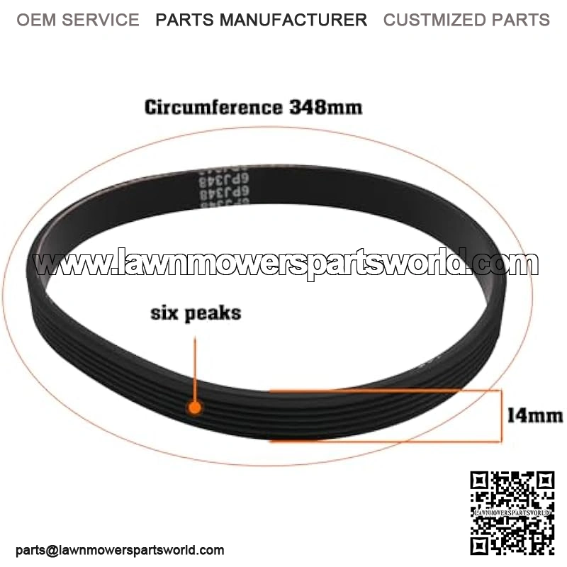 6PJ348 closed loop rubber electric planer drive belt, 14mm width, with 6 ribs, circumference 348mm. The drive belt is compatible with most lawn mowers and woodworking electric planers. The drive belt is made of rubber, which is more wear-resistant, durable and flexible. It is very suitable for replacing damaged or worn belts. Please confirm the model and carefully check the size of the old belt.