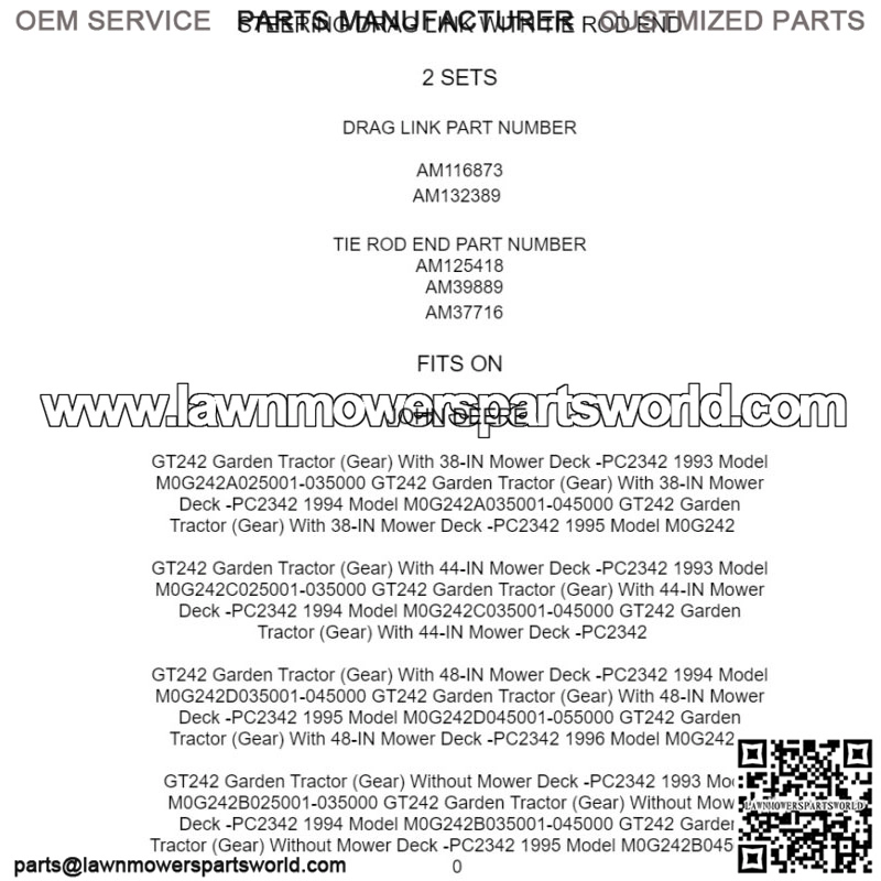 GT242 Garden Tractor (Gear) With 48-IN Mower Deck -PC2342 1994 Model M0G242D035001-045000 GT242 Garden Tractor (Gear) With 48-IN Mower Deck -PC2342 1995 Model M0G242D045001-055000 GT242 Garden Tractor (Gear) With 48-IN Mower Deck -PC2342 1996 Mod