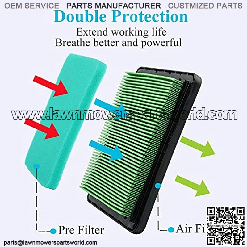 Perfect Fit and Extend Life: Exact size, fit like a glove, easy to install. A simple and fast maintain pleasure, instead of poor method by cleaning air filter. Filter with washable foam pre cleaner, double filter protection and reusable, fearless against heavy dusty and grass, extend life.