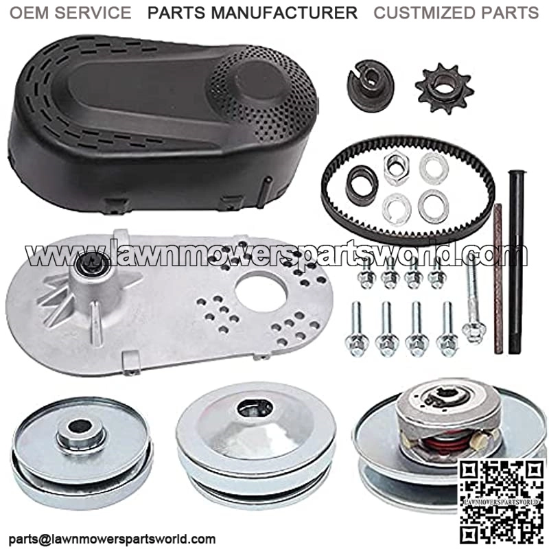 Comet Torque Converter kits are used in small vehicles, riding lawnmowers, small tractors, go karts, mini bikes, mini choppers, ATV, motorcycles, and waterski winches, fit all engines with a 3/4 inch straight crankshaft. Go Kart Torque Converter Kit is a direct replacement and fits all models of Comet TAV2 Torq-A-Verters 218353A, 219552A, 219456A, 217610A, and 203814A 30-75 Comet 30 Series Torque Converter kit bolts on to most engines with a horizontal shaft including: Briggs, Clinton, Honda and clones, Kohler, Lifan, Robin, and Tecumseh motors. Driver clutch bore: 3/4″(16mm), Driven unit: Overall Diameter 6″ (5/8″ driven pulley) , Belt Top Width: 19mm(3/4″), Sprocket teeth: 10 teeth for #40/41/420 chain This is a complete kit that includes both drive and driven clutch pulleys, belt, aluminum engine mount plate, built in jackshaft with sprocket, all mounting hardware.