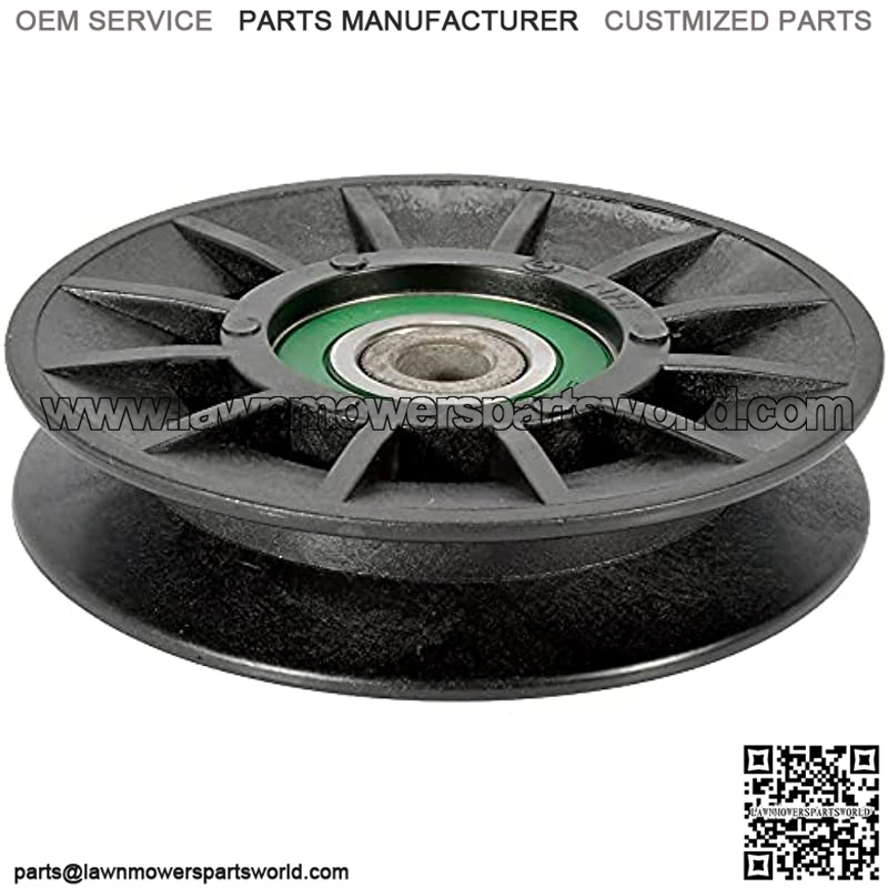 332519B V-idler pulley for Craftsman, Husqvarna, Poulan mowers. Replaces OEM #’s 194326 and 532-194326. Measures 3-1/2 in. O.D., 3/8 in. I.D., 1-5/16 in. H. All products are made to meet or exceed OEM specifications.