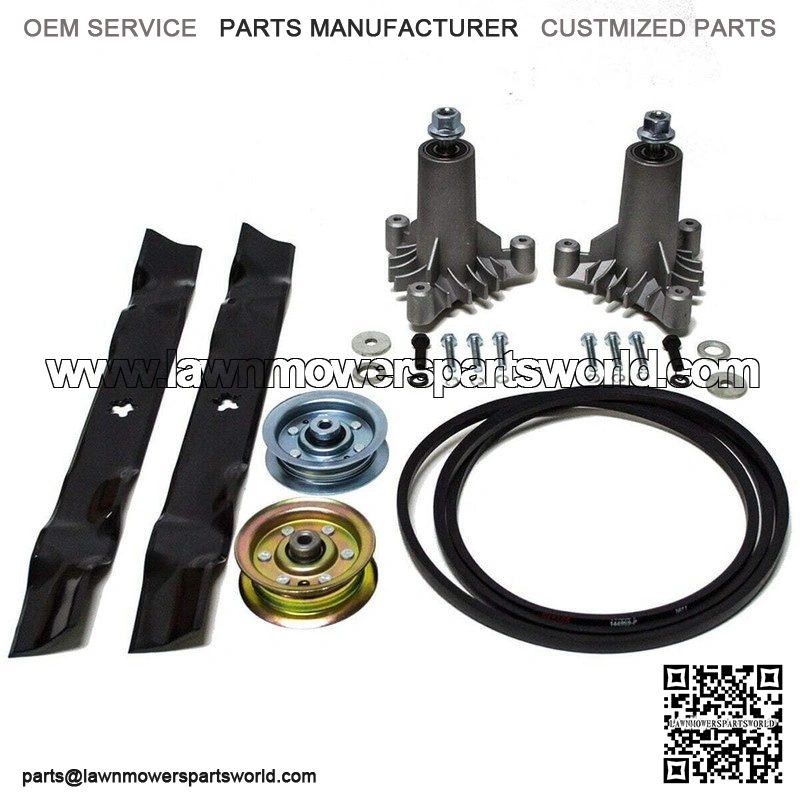 Kit Includes: (2) Spindles (2) Blades (2) Idler Pulleys (1) Belt