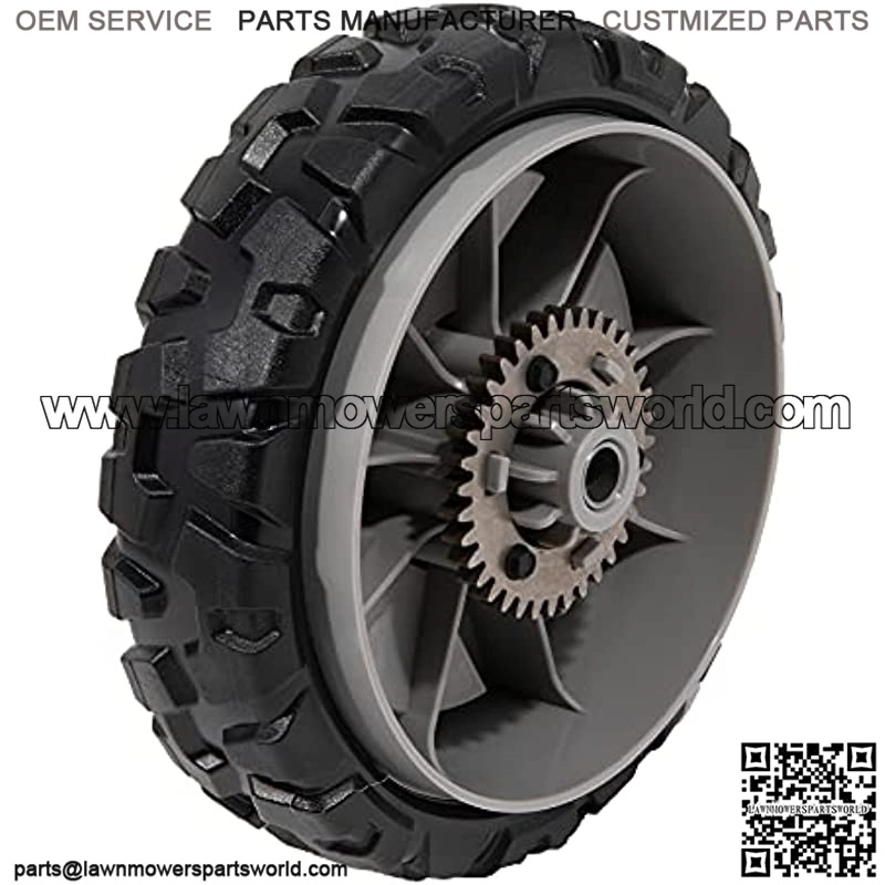 ALL WHEEL DRIVE WHEEL: Fits Craftsman and, Walk-Behind Mowers with a 8 in. x 1.75 in. wheel. DURABLE: Aggressive tread pattern for increased traction. Made with high impact polypropylene for durability. RELIABLE: Metal gear resists wear for optimum performance. Contents include one front wheel tire with rim assembly. EFFECTIVE REPLACEMENT: Contents include one front wheel tire with rim assembly. Bolt on wheel and tire combo is a low hassle, low-cost solution to replacing your lawn tractor tires. UTILIZE INSTRUCTION MANUAL: Replacing worn tires increases traction and reduces lawn turfing. Replace your lawn mower tire if there is damage and visible tire wear
