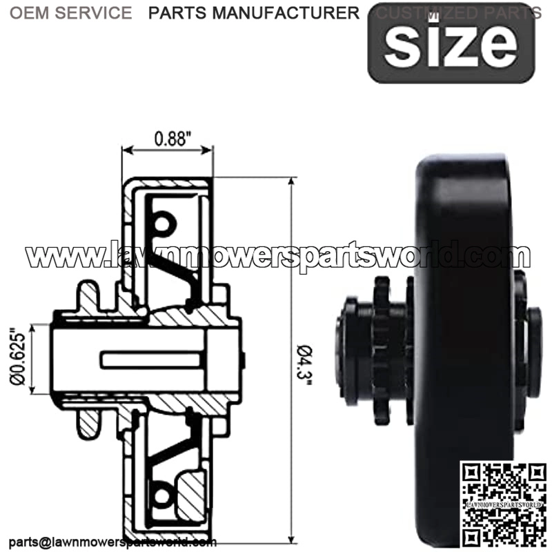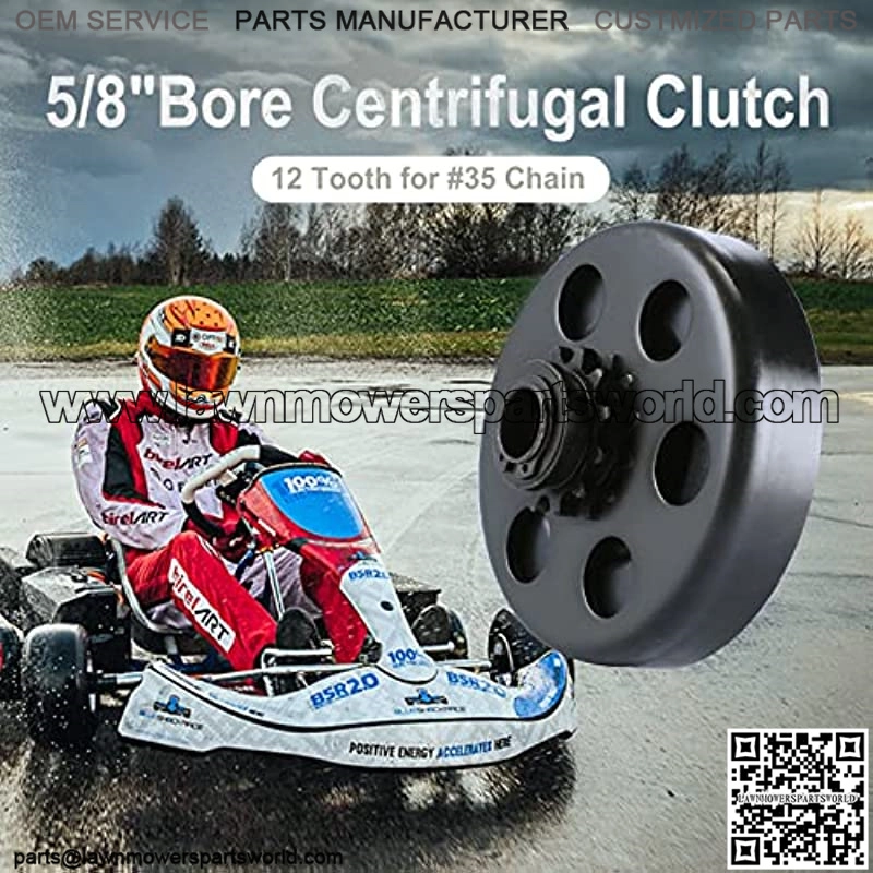 Specification: Bore Size: 5/8″(15.9mm);Key Way: 3/16″(4.8mm), Outside Diameter:4.22 inch, Horse Power: Up to 8 HP, Compatible Chain Size:#35, 12 Tooth Chain Sprocket, Engagement Speed: 2300+300RPM, Rear Tires: <15".