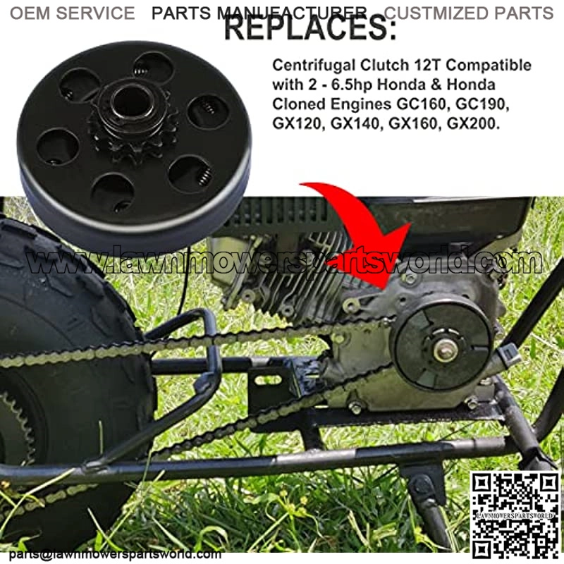 Clutch compatibility: Centrifugal clutch 5/8″ bore 11 tooth design for 2 – 6.5 HP With 5/8″ Shaft Engines.Honda & Honda Cloned Engines GC160, GC190, GX120, GX140, GX160, GX200 Briggs Stratton Tecumseh Engines