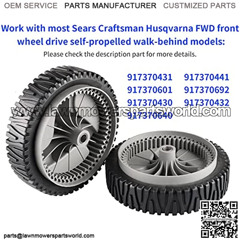 Fits 917371600, 917376583, 917376470, 917376681, 917376061, 917376673, 917370610, 917376551, 917376562, 917253401, 917253450, 917253461, 917253400, 917253411, 917376080. Replaces Craftsman Husqvarna FWD front wheel drive self-propelled walk behind models, plz check the compatibility before you buy. Replace part numbers 583719501, 532402657, 194231X460, 532402567, 401274X460, 194231X427, 532403111 Easy to install with these high quality front wheels, strong and durable to use. 53 teeth to engage the self-propelled function. Diameter: 8″; Bore: 1/2 “; Hub Offset: 1-5/8”. Comes 2 pack in one set, replace both front tire wheels at one time. Worry-Free purchase, 24 hours email service.Work with most Sears Craftsman Husqvarna FWD front wheel drive self-propelled walk behind models Replaces 583719501, 532402657, 194231X460, 532402567, 401274X460, 194231X427, 532403111 Fit the below specific models: ??Use Ctrl+F to search if your mode