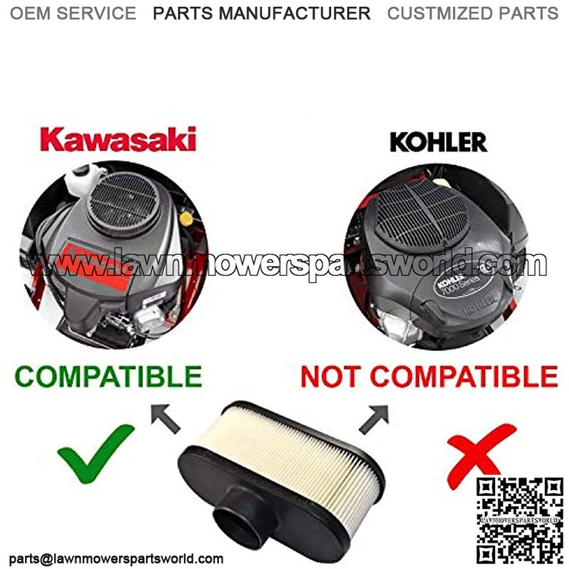 The same series of Toro Riding Mowers can be equipped with the engines of different brands (Kawasaki or Kohler) which need different air filters.