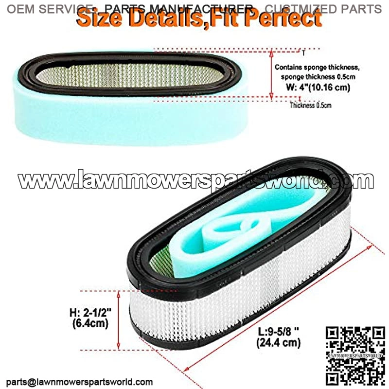 3. Air filter size: L:9 5/8 “;W: 4″ ;H: 2 1/2” .