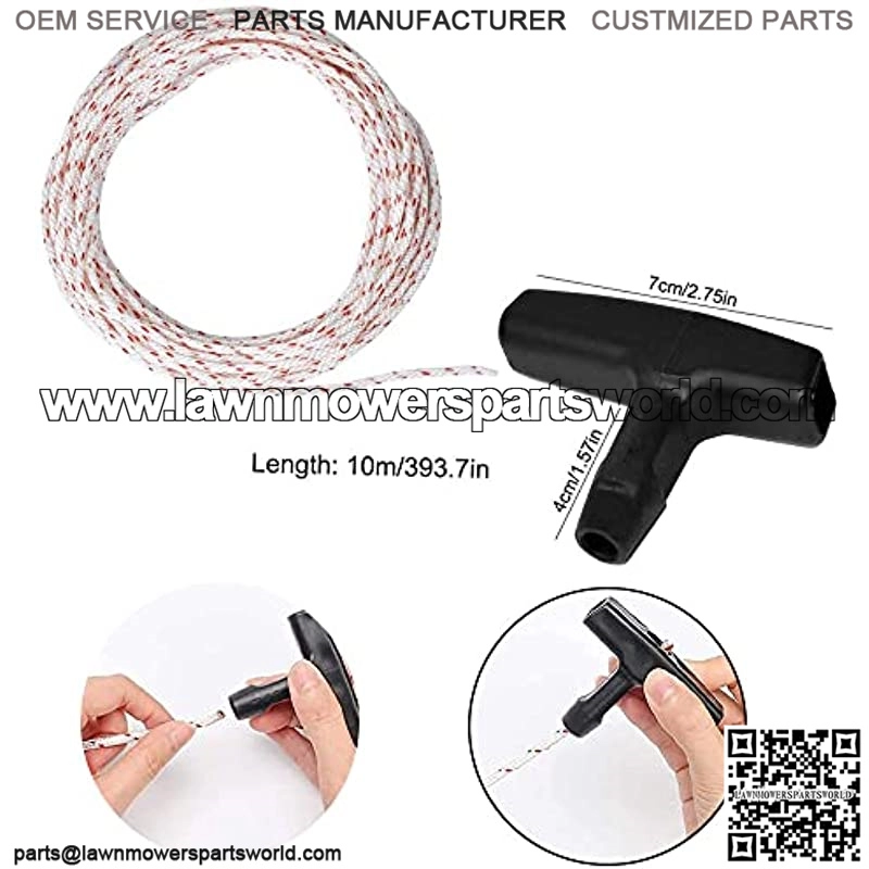 ??High Quality Material??The pull cord is made of high-quality polyester material, and the recoil starter handle is made of high-quality plastic, which is sturdy and durable. The recoil starter handle has a good grip and is not easy to loosen. It can be used multiple times. ??Wide Application??This recoil starter handle is used for the pull start of engines, such as lawn mowers, trimmers, edge grinding machines, electric saws, lawn mowers, generators, etc. ??Easy To Use??The strimmer pull cord can be easily cut into different lengths according to your needs, making it more convenient to use. ??Easy To Install??The strimmer pull is not easy to break, durable and easy to install, easy to use, just attach it directly. ??Sincere And Warm Servise??If you are not satisfied with our recoil starter handle, you can send emails to us at any time. We will reply you instantly and help you solve your problem.