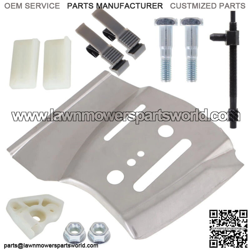 1 x Chain Bar Plate, 1 x Adjuster screw, 2 x Bumper Stripe, 2 x Bar Stud, 2 x Bar Nut, 2 x Air Filter Clip.