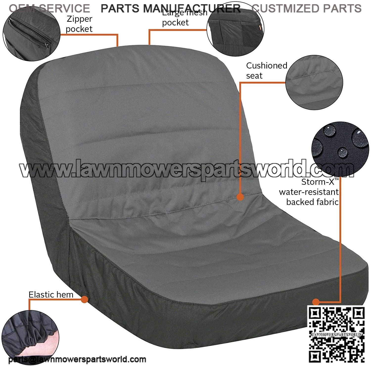 Fits tractor seat backrests 16.5″ – 18″H without armrests