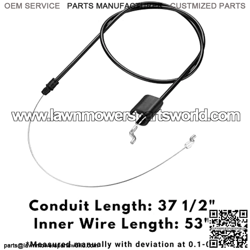The control cable stops the blade when the control handle is released on mowers. This engine control cable is compatible with Troy-Bilt, MTD, Bolens, Craftsman, Yard Machines and Yard-Man push lawnmowers. Please check the compatibility before purchase. Cable fits models: (1) Craftsman–24737000, 24737030, 24737185, 24738507, 24738520, 24738821, 247393700, 247393710, 247393720, 247393730, 247393740, 247393750, 247393800 (2) Troy Bilt– 11A-542Q711, 12AV556O711, 12AV565Q711, 12AV566F211, 12AV566F266, 12AV566N011, 12AV566N711, 12AV569N766, 12AV569Q766 (3) MTD– 11A-020B006, 11A-020L206,11A-020L706, 11A-02JV006,11A-02JX706,11A-B0JC006,11A-B0JT706, 11A-544B004, 11A-B22Q704, 11A-B23T704, 11A-542Q724, 11A-544A059, 11A-B23M759,11A-B24A059, etc. Easy to install with Z bends on each end. Replace part #746-0957, 946-0957. Cable Length: 53″, Conduit Length:37.5″. You can make a proper adjustment in length if needed to fit your mower.The control cable stops the blade when
