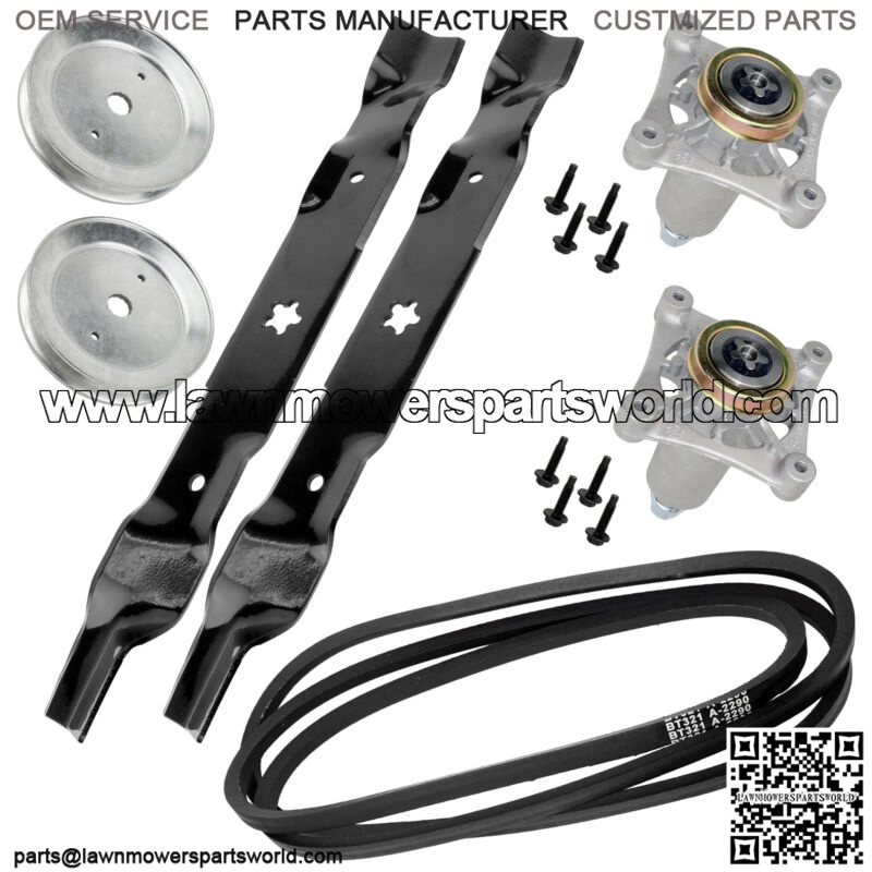 2x Spindle Assemblies2x Blades2X Spindle Pulley1x Belt