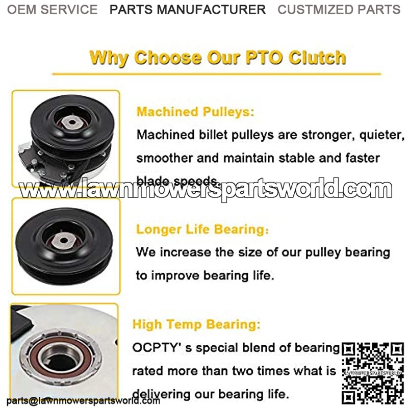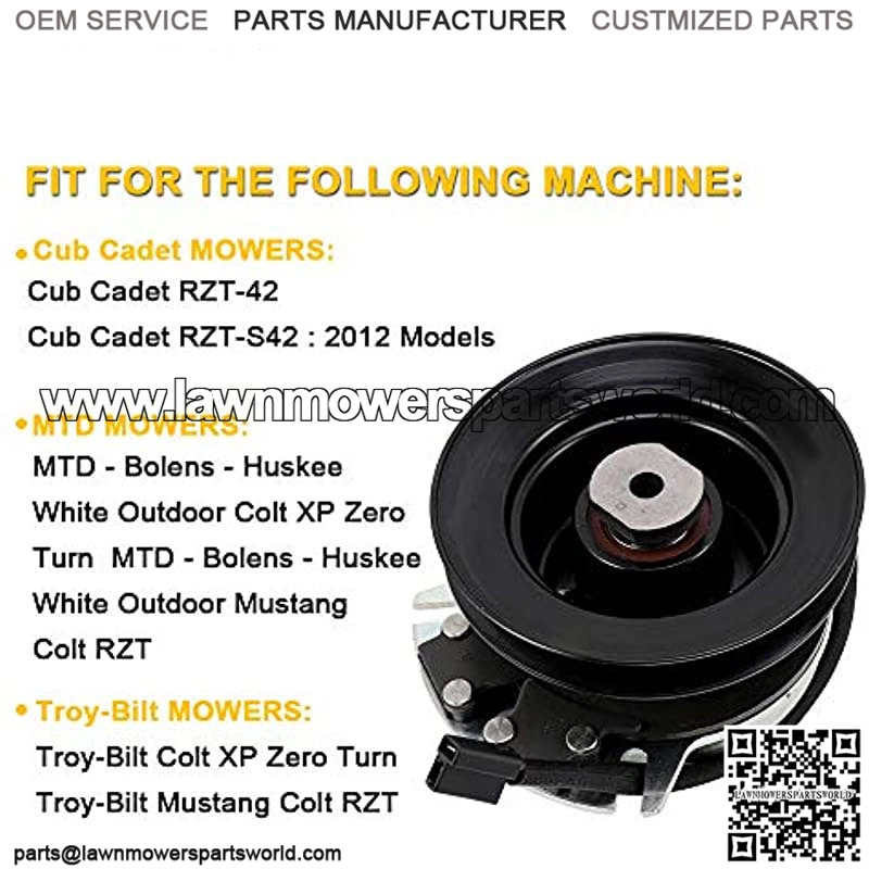 FITS THE POWER TAKE OFF CLUTCH – The PTO Clutch fit for Bolens, for Cub Cadet, for Huskee, for MTD, for Sears Craftsman, for Troy Bilt, for White Outdoor Mower Clutch 1″ Crankshaft ADJUSTABLE WEAR – All PTO clutches can be adjusted for wear. This saves costs and saves end-user downtime. Since the clutch can be adjusted on the machine, the end user can greatly extend the service life of the clutch on the machine. OPERATOR CONVENIENCE – Rather than an operator trying to fight against a mechanical linkage or a belt idler, a simple flip of a switch will engage the clutch, resulting in less operator fatigue. SIMPLE INSTALLATION – Since the majority of clutches are one piece designs that come in pre-set, there are no adjustments to make either at the mower manufacturer or with the end user. Both the clutch and the brake functions are contained in one single unit taking up a relatively small amount of space. ATTENTION – Match the original PTO Clutch perfectly. Please verify th