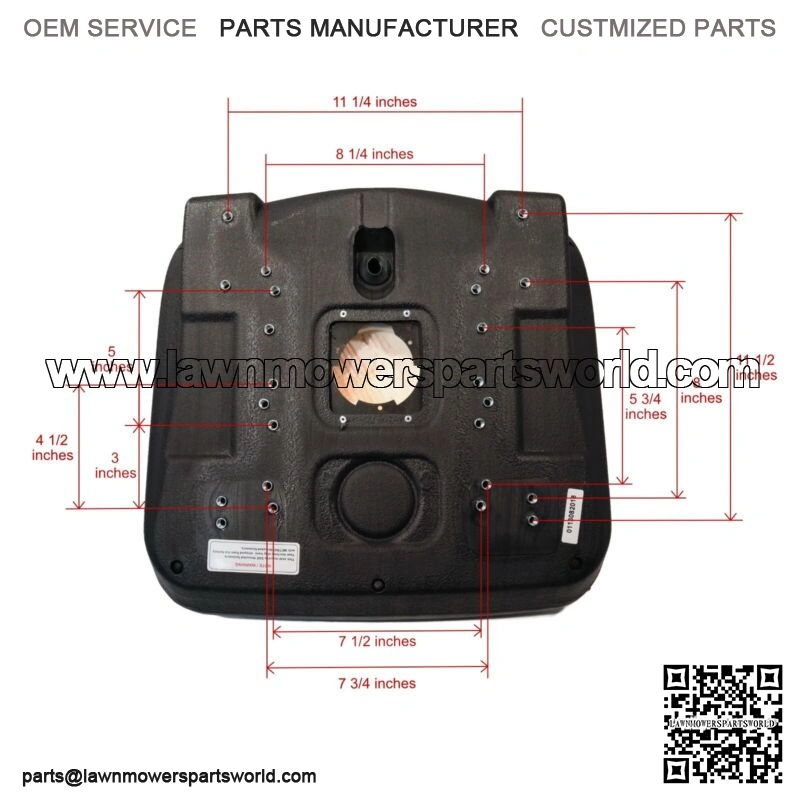 Specs – Seat Back Height: 18 1/2″. Mount Pattern Type: Multi-hole. Color: Gray. Material: Vinyl. Pivot Rod Hole Diameter: 3/8″. Mount Holes to Seat: 7 11/16″ (Center to Center). Refer to images 2 & 3 for more information