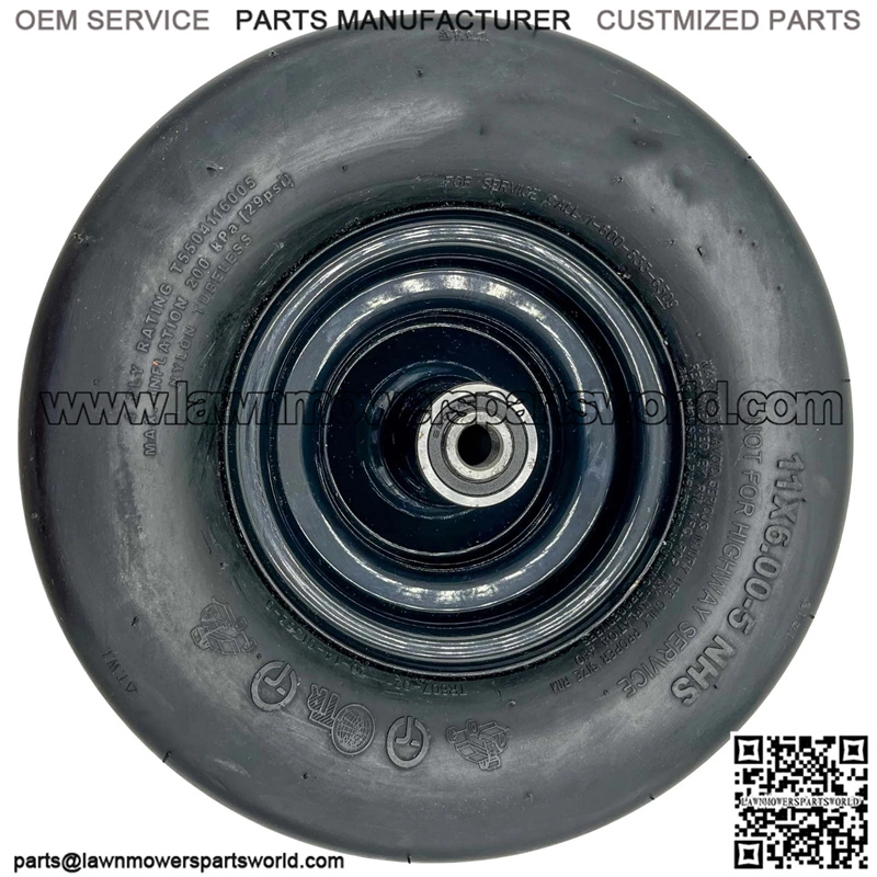11×6.00-5 Flat Free Tires & Wheels (2-Pack) 5.875″ Hub 3/4″ Bushings