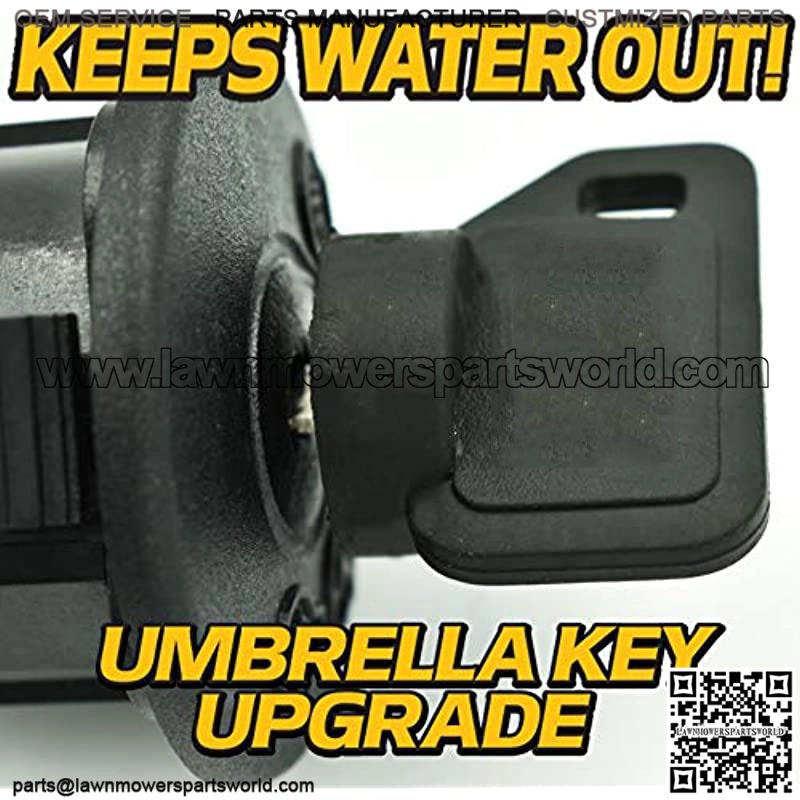 HD SWITCH: Engineered Performance REAL PROTECTION: Umbrella Key Protects Against Harmful Dust, Dirt and Water NEW KEY DESIGN: Prevents Key From Vibrating Loose and Falling Out While Mowing. (Switch Also Accepts Old Key) 4 POSITION: HEADLIGHT Control Setting – 7 Terminals ALSO INCLUDED: Large Spare Metal Key & Carabiner KeychainPremium Key Switch Kit. NEW Soft Grip Umbrella Key Extends Life of The Switch by Keeping Harmful Dust, Dirt and Water Out! NEW Key Design is a Direct Replacement and fixes Common Issue where the Old Key would Vibrate Loose and Fall Out While Mowing. Switch Configuration is 4-Position with 7-Terminals The Snap-In-Place Switch Design makes for Lightning FAST Installation, From our Upgraded Products, to FAST Shipping, we know how to Attack Downtime. Better Quality, Longer Life, Less Downtime.