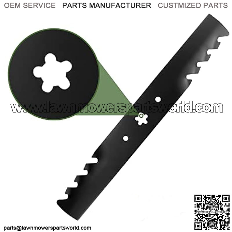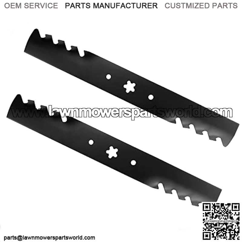 [Blade Specs] Length: 19 2/7 inches, Width: 2 1/2 inches, Thickness: 0.197 inches, Center Hole: 5 Point Star, For Deck Size: 38 inches, 2 PCS Set, Toothed Mulching Blades. 100% matching OEM, 1 Year warrantyProduct Description