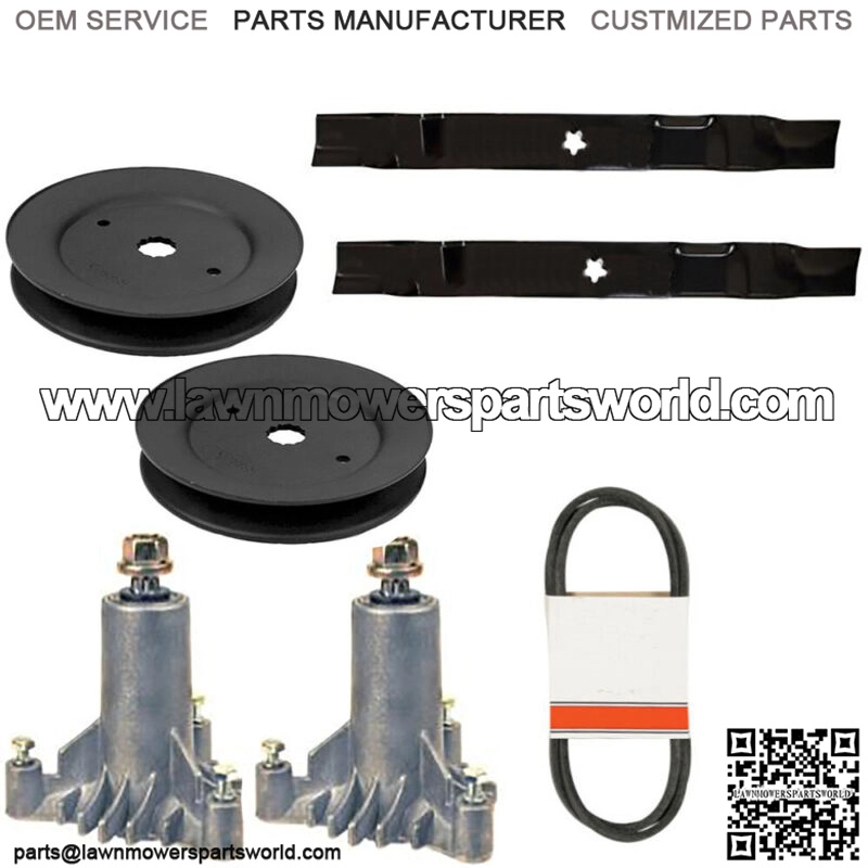 One New Aftermarket Mower Deck Rebuild Kit Fits Husqvarna 42″ LT1000 130794 134149 144959KIT INCLUDES : (2) 130794 Complete Deck Spindle Assemblies(2) 134149 Mulching Blades (1) 144959 Deck Drive Belt (2) 173436 Pulleys [153535]Fits Mowers by AYP, American Yard Products, Craftsman, Fits Electrolux Home Products, Fits Husqvarna, Poulan, and Sears.