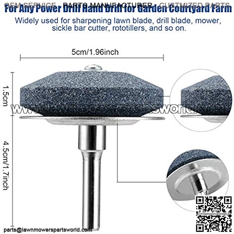??Upgraded Version??: The new version Lawn Mower Blade Sharpener Made of corundum with stainless steel base, it solves the base wear caused by the excessive speed of grindstone, and effectively prolongs the service life and improve use effect of the product. Our lawn mower blade sharpener is provided by the original factory, and it is absolutely guaranteed. ??WIDE APPLICATION?? It ‘s a good helper for lawn mower and lawn tractor’ blades. For Any Power Drill Hand Drill for Garden Courtyard Farm??Widely used for sharpening lawn blade, drill blade, mower, sickle bar cutter, rototillers, and so on. ??Easy to use?? It only takes 10s to install it. You only need to install it on your electric drill to use it. And it can quickly make blunt old blades sharper.Effectively provide your productivity. ??Size & packaging?? SIZE : 50 x 47 mm / 1.97 x 1.85 inch for each one.Packaging : 3 pack lawn mower blade sharpeners + 1 Balancer in each beautiful box. ??100%GUARANTEE SERVICE??Satisfying cust