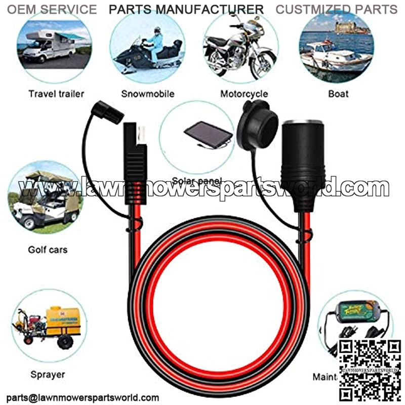 Length: 5ft. about 1.5m, the long cable allows you to meet power anywhere you need it. very handy, thick and heavy duty enough. SAE to Cigarette Lighter Socket Adapter Cable with SAE jack. Designed for extender your power source. With Waterproof Cover : It can protect sae quick connectors and 12v cigarette lighter plug from rain and dust, which can stay clean and dry inside when you don’t use it. Perfect for your favorite 12V devices, like CB radio, air pump, GPS, solar panel, vacuum cleaner, coffee maker, tire inflator.Have a wide range of application in motorcycles, ATVs, snowmobiles, scooter, RV, mower, bike, truck, etc. 12v cigarette lighter adapter helps to keep cell phones, GPS devices, CB radio and other usb devices charged in long ride. 18 Months warranty .24 hours passionate customer service.30 days freely return and exchange . Any question, please feel free to contact us first, we will support you the best customer service.