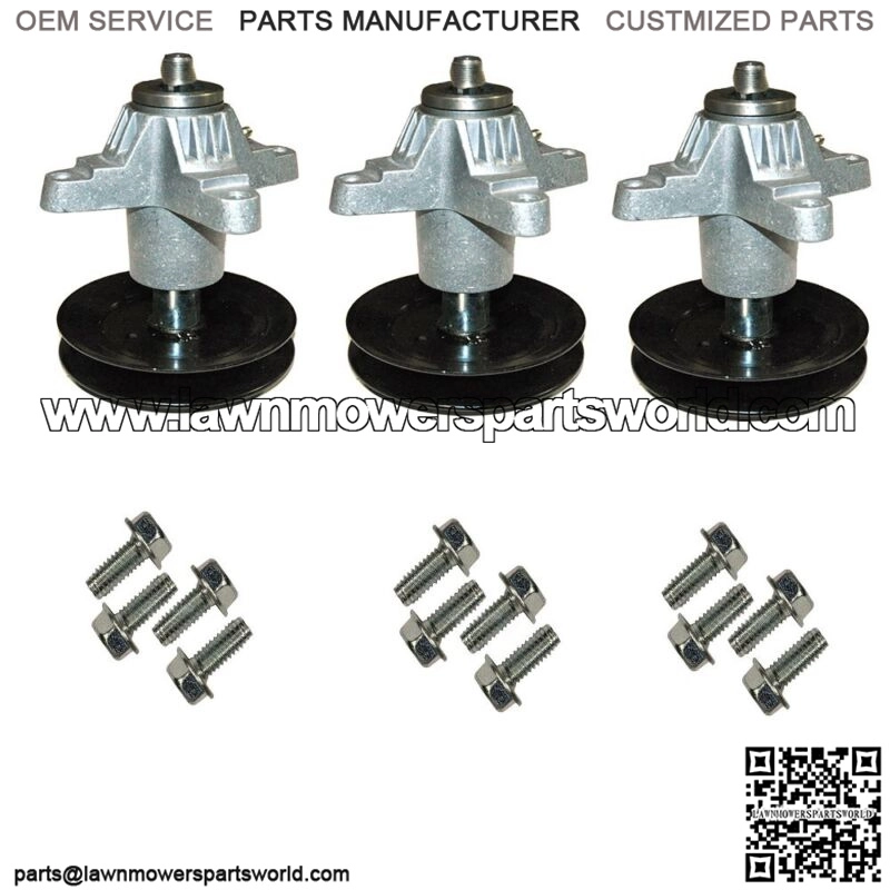 One Set of Three (3) Brand New Aftermarket Replacement Spindle Assemblies W/ Bolts for MTD 54″ Deck Mowers