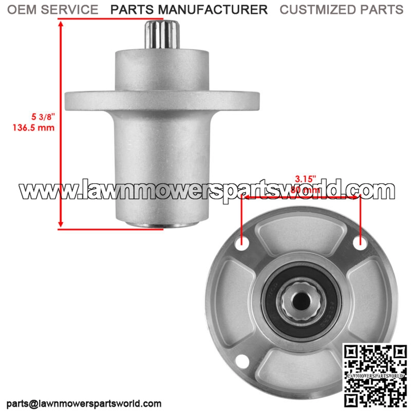 PREMIUM REPLACEMENT PARTWe strongly suggest comparing the posted picture to your faulty unit!MOWER DECK SPINDLE SPINDLE PART NUMBER601804 607418SPINDLE SPECS:Height: 5 3/8″FITS ON Hustler FasTrak SD932327US932335US932491 36?? REAR SWEPT FASTRAK SD KAWASAKI FX600 (19HP)932517 42?? REAR SWEPT FASTRAK SD KAWASAKI FX600 (19HP)Raptor Flip-Up933614 ?C HTRFUS048KOHKT740A933622 ?C HTRFUS054KOHKT740A933846US ?C HTRFUS048KOHKT740U933853US ?C HTRFUS054KOHKT740U934745 FLIP-UP KOHLER KT740 (25HP)935940935957935965 FLIP-UP KOHLER KT740 (25HP)938464 ?C HTRFUL048KAWFR691VA938472 ?C HTRFUL054KAWFR691VA940312 ?C HTHFUL048KAWFR691VA940320 ?C HTHFUL054KAWFR691VARaptor SD934547US ?C HTRSDS048KOHKT740U934760 ?C HTRSDS054KOHKT740M934778 ?C HTRSDS060KOHKT745M935825 ?C HTRSDS048KOHKT740A935833 ?C HTRSDS054KOHKT740A935841 ?C HTRSDS060KOHKT745A935858US ?C HTRSDS048KOHKT740U935866US ?C HTRSDS054KOHKT740U935882 ?C HTRSDS054KOHKT740M935916 ?C HTRSDS060KOHKT745M936476 ?C HTRSXL054KAWFR691VA936484 ?C HTRSXL054KAWFR691VM936682 ?C HTRSDS036K