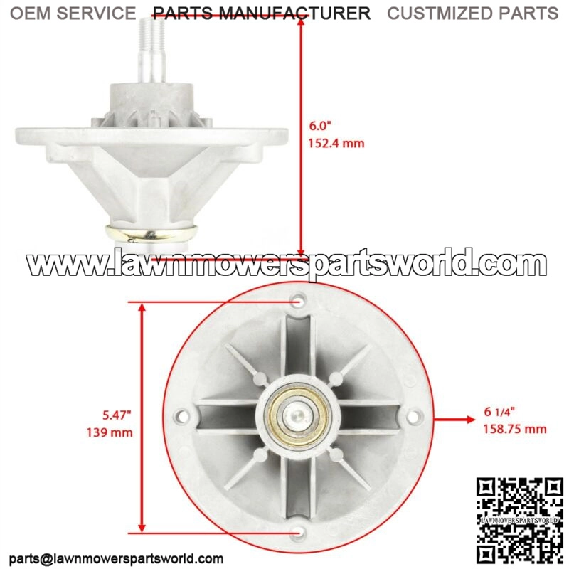 Premium Quality Replacement PartSPINDLE ASSEMBLYSpec:Height: 6″Outer Diameter: 6-1/4″ Compatible with Following TORO Models:135, RT380H Recycling Mower, 2008 (SN 135E280000001-135E280999999) 135, RT380H Recycling Mower, 2008 (SN 135E280000001-135E280999999) 135, RT380H Recycling Mower, 2009 (SN 135E290000001-135E290999999) 135, RT380H Recycling Mower, 2009 (SN 135E290000001-135E290999999) 135E, RT380H Recycling Mower, 2008 (SN 280000001-280999999) 135E, RT380H Recycling Mower, 2009 (SN 290000001-290999999) 136, RZT420H Riding Mower, 2008 (SN 136E280000001-136E280999999) 136, RZT420H Riding Mower, 2008 (SN 136E280000001-136E280999999) 136, RZT420H Riding Mower, 2009 (SN 136E290000001-136E290999999) 136, RZT420H Riding Mower, 2009 (SN 136E290000001-136E290999999) 136E, RZT420H Riding Mower, 2008 (SN 280000001-280999999) 136E, RZT420H Riding Mower, 2009 (SN 290000001-290999999) 20602, Lawn Striping Kit with 30in Roller, Walk-Behind Lawn Mowers 51780, Hedge Trimmer w/ Pack, 1991 (SN 100000