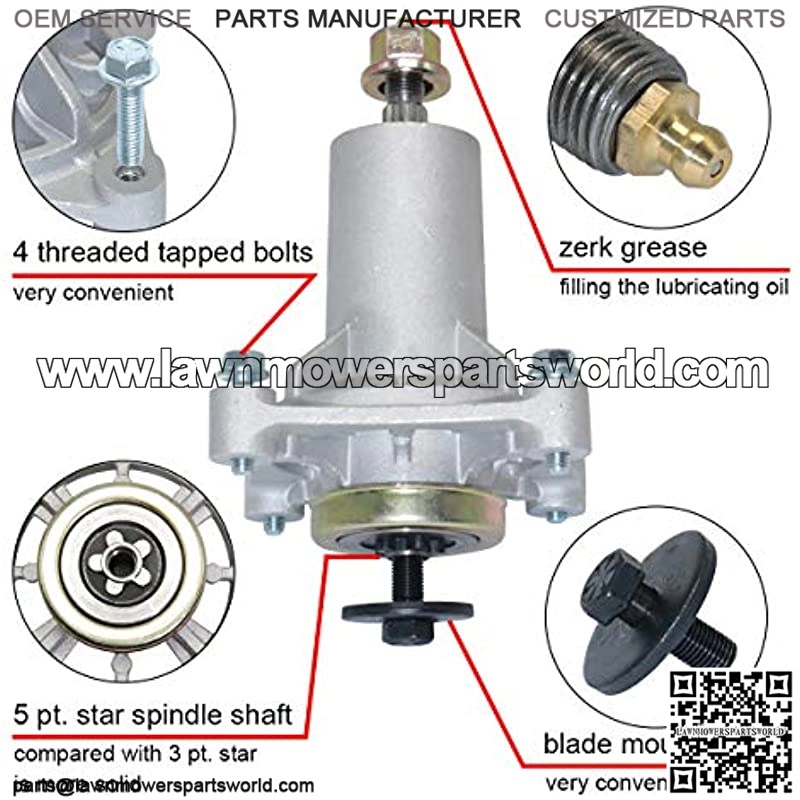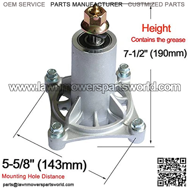 ??REPLACE??AYP: 192870, 187292. Ariens: 21546238. Dixon: 532192870. Husqvarna: 532187292 532187281 532192870 539112057 587125401 YTA18542 YTH2348 . :11590. Stens: 285-585 and other riding mowers. ??REPLACE??AYP, Sears, Craftsman, Ariens, Husqvarna, Electrolux, Poulan Pro & Oregon 42″, 46″, 48″ and 54″ decks lawn tractors.Fits for 54″ poulan pro P54ZX. ??DIMENSION??:Length 7-1/2″ / 190mm,Contains the grease.Mounting hole distance:5-5/8″ / 143mm.Blade mound: 5 point star shaped,more stable. ??PACKAGE INCLUDE??1 x Top nut, 1 x Bottom bolt, 2 x Washers, 4 Tapped bolts and 1 x Pre-lubricated grease zerk.Do make sure you put the washer between the pulley and spindle to prevent drag and premature pulley failure. ??3 MONTHS WARRANTY ?? Please do not hesitate to contact us if you have any questions.The Connect comes with a full 3 months warranty.If the product is broken or there is something wrong with the package, we will replace it.Suitable Models Fit