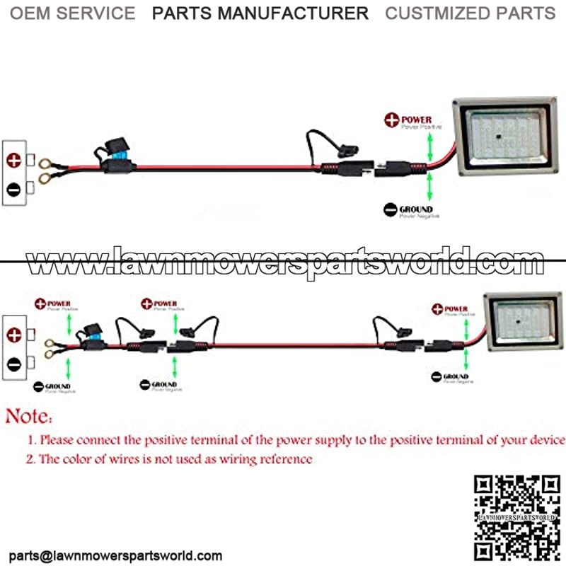 Eyelet Terminal Connector: SPT-2,10AWG/2C; Length: 2 feet; Color: Red/Black; With 15A fused for electrical protection; Fast and easy to connect and disconnect.